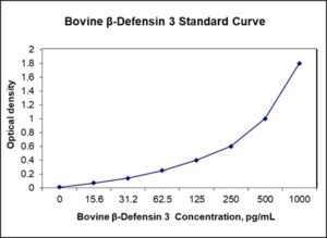 This ELISA kit is for quantification of BD-3 in bovine. This is a quick ELISA assay that reduces time to 50% compared to the conventional method, and the entire assay only takes 3 hours. This assay employs the quantitative sandwich enzyme immunoassay technique and uses biotin-streptavidin chemistry to improve the performance of the assays. An antibody specific for BD-3 has been pre-coated onto a microplate. Standards and samples are pipetted into the wells and any BD-3 present is bound by the immobilized antibody. After washing away any unbound substances, a detection antibody specific for BD-3 is added to the wells. Following wash to remove any unbound antibody reagent, a detection reagent is added. After intensive wash a substrate solution is added to the wells and color develops in proportion to the amount of BD-3 bound in the initial step. The color development is stopped, and the intensity of the color is measured.