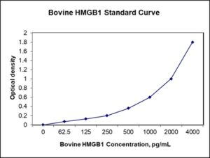 This ELISA kit is for quantification of HMGB1 in bovine. This is a quick ELISA assay that reduces time to 50% compared to the conventional method, and the entire assay only takes 3 hours. This assay employs the quantitative sandwich enzyme immunoassay technique and uses biotin-streptavidin chemistry to improve the performance of the assays. An antibody specific for HMGB1 has been pre-coated onto a microplate. Standards and samples are pipetted into the wells and any HMGB1 present is bound by the immobilized antibody. After washing away any unbound substances, a detection antibody specific for IHMGB1 is added to the wells. Following wash to remove any unbound antibody reagent, a detection reagent is added. After intensive wash a substrate solution is added to the wells and color develops in proportion to the amount of HMGB1 bound in the initial step. The color development is stopped, and the intensity of the color is measured.