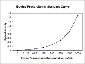 This ELISA kit is for quantification of PCT in bovine. This is a quick ELISA assay that reduces time to 50% compared to the conventional method, and the entire assay only takes 3 hours. This assay employs the quantitative sandwich enzyme immunoassay technique and uses biotin-streptavidin chemistry to improve the performance of the assays. An antibody specific for PCT has been pre-coated onto a microplate. Standards and samples are pipetted into the wells and any PCT present is bound by the immobilized antibody. After washing away any unbound substances, a detection antibody specific for PCT is added to the wells. Following wash to remove any unbound antibody reagent, a detection reagent is added. After intensive wash a substrate solution is added to the wells and color develops in proportion to the amount of PCT bound in the initial step. The color development is stopped, and the intensity of the color is measured.