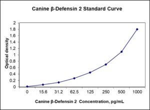 This ELISA kit is for quantification of BD-2 in canine. This is a quick ELISA assay that reduces time to 50% compared to the conventional method, and the entire assay only takes 3 hours. This assay employs the quantitative sandwich enzyme immunoassay technique and uses biotin-streptavidin chemistry to improve the performance of the assays. An antibody specific for BD-2 has been pre-coated onto a microplate. Standards and samples are pipetted into the wells and any BD-2 present is bound by the immobilized antibody. After washing away any unbound substances, a detection antibody specific for BD-2 is added to the wells. Following wash to remove any unbound antibody reagent, a detection reagent is added. After intensive wash a substrate solution is added to the wells and color develops in proportion to the amount of BD-2 bound in the initial step. The color development is stopped, and the intensity of the color is measured.