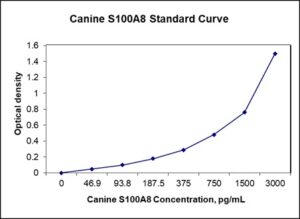 This ELISA kit is for quantification of S100A8 in canine. This is a quick ELISA assay that reduces time to 50% compared to the conventional method, and the entire assay only takes 3 hours. This assay employs the quantitative sandwich enzyme immunoassay technique and uses biotin-streptavidin chemistry to improve the performance of the assays. An antibody specific for S100A8 has been pre-coated onto a microplate. Standards and samples are pipetted into the wells and any S100A8 present is bound by the immobilized antibody. After washing away any unbound substances, a detection antibody specific for S100A8 is added to the wells. Following wash to remove any unbound antibody reagent, a detection reagent is added. After intensive wash a substrate solution is added to the wells and color develops in proportion to the amount of S100A8 bound in the initial step. The color development is stopped, and the intensity of the color is measured.