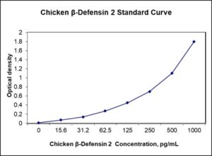 This ELISA kit is for quantification of BD-2 in chicken. This is a quick ELISA assay that reduces time to 50% compared to the conventional method, and the entire assay only takes 3 hours. This assay employs the quantitative sandwich enzyme immunoassay technique and uses biotin-streptavidin chemistry to improve the performance of the assays. An antibody specific for BD-2 has been pre-coated onto a microplate. Standards and samples are pipetted into the wells and any BD-2 present is bound by the immobilized antibody. After washing away any unbound substances, a detection antibody specific for BD-2 is added to the wells. Following wash to remove any unbound antibody reagent, a detection reagent is added. After intensive wash a substrate solution is added to the wells and color develops in proportion to the amount of BD-2 bound in the initial step. The color development is stopped, and the intensity of the color is measured.