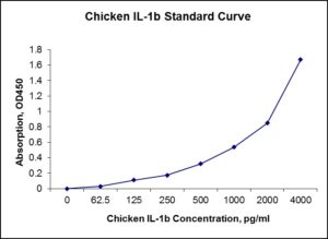This ELISA kit is for quantification of IL-1β in chicken. This is a quick ELISA assay that reduces time to 50% compared to the conventional method, and the entire assay only takes 3 hours. This assay employs the quantitative sandwich enzyme immunoassay technique and uses biotin-streptavidin chemistry to improve the performance of the assays. An antibody specific for IL-1β has been pre-coated onto a microplate. Standards and samples are pipetted into the wells and any IL-1β present is bound by the immobilized antibody. After washing away any unbound substances, a detection antibody specific for IL-1β is added to the wells. Following wash to remove any unbound antibody reagent, a detection reagent is added. After intensive wash a substrate solution is added to the wells and color develops in proportion to the amount of IL-1β bound in the initial step. The color development is stopped, and the intensity of the color is measured.