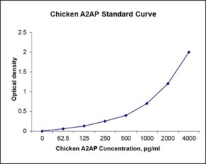 This ELISA kit is for quantification of A2AP in chicken. This is a quick ELISA assay that reduces time to 50% compared to the conventional method, and the entire assay only takes 3 hours. This assay employs the quantitative sandwich enzyme immunoassay technique and uses biotin-streptavidin chemistry to improve the performance of the assays. An antibody specific for A2AP has been pre-coated onto a microplate. Standards and samples are pipetted into the wells and any A2AP present is bound by the immobilized antibody. After washing away any unbound substances, a detection antibody specific for A2AP is added to the wells. Following wash to remove any unbound antibody reagent, a detection reagent is added. After intensive wash a substrate solution is added to the wells and color develops in proportion to the amount of A2AP bound in the initial step. The color development is stopped, and the intensity of the color is measured.