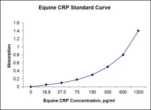 This ELISA kit is for quantification of CRP in horse. This is a quick ELISA assay that reduces time to 50% compared to the conventional method, and the entire assay only takes 3 hours. This assay employs the quantitative sandwich enzyme immunoassay technique and uses biotin-streptavidin chemistry to improve the performance of the assays. An antibody specific for CRP has been pre-coated onto a microplate. Standards and samples are pipetted into the wells and any CRP present is bound by the immobilized antibody. After washing away any unbound substances, a detection antibody specific for CRP is added to the wells. Following wash to remove any unbound antibody reagent, a detection reagent is added. After intensive wash a substrate solution is added to the wells and color develops in proportion to the amount of CRP bound in the initial step. The color development is stopped, and the intensity of the color is measured.