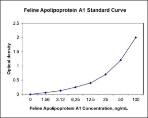 This ELISA kit is for quantification of ApoAI in feline. This is a quick ELISA assay that reduces time to 50% compared to the conventional method, and the entire assay only takes 3 hours. This assay employs the quantitative sandwich enzyme immunoassay technique and uses biotin-streptavidin chemistry to improve the performance of the assays. An antibody specific for ApoAI has been pre-coated onto a microplate. Standards and samples are pipetted into the wells and any ApoAI present is bound by the immobilized antibody. After washing away any unbound substances, a detection antibody specific for ApoAI is added to the wells. Following wash to remove any unbound antibody reagent, a detection reagent is added. After intensive wash a substrate solution is added to the wells and color develops in proportion to the amount of ApoAI bound in the initial step. The color development is stopped, and the intensity of the color is measured.