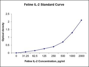 This ELISA kit is for quantification of IL-2 in feline. This is a quick ELISA assay that reduces time to 50% compared to the conventional method, and the entire assay only takes 3 hours. This assay employs the quantitative sandwich enzyme immunoassay technique and uses biotin-streptavidin chemistry to improve the performance of the assays. An antibody specific for IL-2 has been pre-coated onto a microplate. Standards and samples are pipetted into the wells and any IL-2 present is bound by the immobilized antibody. After washing away any unbound substances, a detection antibody specific for IL-2 is added to the wells. Following wash to remove any unbound antibody reagent, a detection reagent is added. After intensive wash a substrate solution is added to the wells and color develops in proportion to the amount of IL-2 bound in the initial step. The color development is stopped, and the intensity of the color is measured.