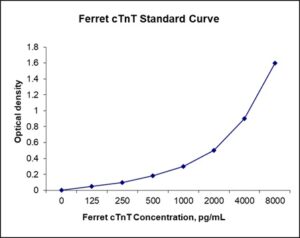 This ELISA kit is for quantification of cTnT in ferret. This is a quick ELISA assay that reduces time to 50% compared to the conventional method, and the entire assay only takes 3 hours. This assay employs the quantitative sandwich enzyme immunoassay technique and uses biotin-streptavidin chemistry to improve the performance of the assays. An antibody specific for cTnT has been pre-coated onto a microplate. Standards and samples are pipetted into the wells and any cTnT present is bound by the immobilized antibody. After washing away any unbound substances, a detection antibody specific for cTnT is added to the wells. Following wash to remove any unbound antibody reagent, a detection reagent is added. After intensive wash a substrate solution is added to the wells and color develops in proportion to the amount of cTnT bound in the initial step. The color development is stopped, and the intensity of the color is measured.