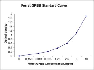This ELISA kit is for quantification of GPBB in ferret. This is a quick ELISA assay that reduces time to 50% compared to the conventional method, and the entire assay only takes 3 hours. This assay employs the quantitative sandwich enzyme immunoassay technique and uses biotin-streptavidin chemistry to improve the performance of the assays. An antibody specific for GPBB has been pre-coated onto a microplate. Standards and samples are pipetted into the wells and any GPBB present is bound by the immobilized antibody. After washing away any unbound substances, a detection antibody specific for GPBB is added to the wells. Following wash to remove any unbound antibody reagent, a detection reagent is added. After intensive wash a substrate solution is added to the wells and color develops in proportion to the amount of GPBB bound in the initial step. The color development is stopped, and the intensity of the color is measured.