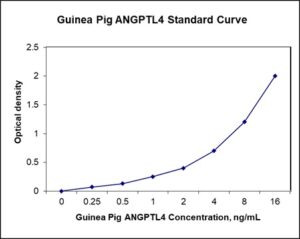 This ELISA kit is for quantification of ANGPTL4 in guinea pig. This is a quick ELISA assay that reduces time to 50% compared to the conventional method, and the entire assay only takes 3 hours. This assay employs the quantitative sandwich enzyme immunoassay technique and uses biotin-streptavidin chemistry to improve the performance of the assays. An antibody specific for VEGFR1 has been pre-coated onto a microplate. Standards and samples are pipetted into the wells and any ANGPTL4 present is bound by the immobilized antibody. After washing away any unbound substances, a detection antibody specific for ANGPTL4 is added to the wells. Following wash to remove any unbound antibody reagent, a detection reagent is added. After intensive wash a substrate solution is added to the wells and color develops in proportion to the amount of ANGPTL4 bound in the initial step. The color development is stopped, and the intensity of the color is measured.