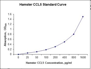 This ELISA kit is for quantification of CCL5 in hamster. This is a quick ELISA assay that reduces time to 50% compared to the conventional method, and the entire assay only takes 3 hours. This assay employs the quantitative sandwich enzyme immunoassay technique and uses biotin-streptavidin chemistry to improve the performance of the assays. An antibody specific for CCL5 has been pre-coated onto a microplate. Standards and samples are pipetted into the wells and any CCL5 present is bound by the immobilized antibody. After washing away any unbound substances, a detection antibody specific for CCL5 is added to the wells. Following wash to remove any unbound antibody reagent, a detection reagent is added. After intensive wash a substrate solution is added to the wells and color develops in proportion to the amount of CCL5 bound in the initial step. The color development is stopped, and the intensity of the color is measured.