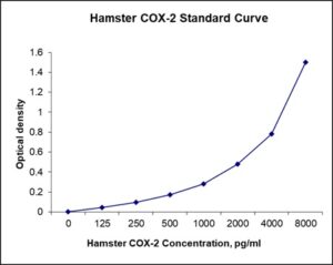This ELISA kit is for quantification of COX-2 in hamster. This is a quick ELISA assay that reduces time to 50% compared to the conventional method, and the entire assay only takes 3 hours. This assay employs the quantitative sandwich enzyme immunoassay technique and uses biotin-streptavidin chemistry to improve the performance of the assays. An antibody specific for COX-2 has been pre-coated onto a microplate. Standards and samples are pipetted into the wells and any COX-2 present is bound by the immobilized antibody. After washing away any unbound substances, a detection antibody specific for COX-2 is added to the wells. Following wash to remove any unbound antibody reagent, a detection reagent is added. After intensive wash a substrate solution is added to the wells and color develops in proportion to the amount of COX-2 bound in the initial step. The color development is stopped, and the intensity of the color is measured.