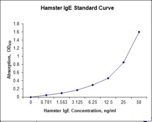 This ELISA kit is for quantification of IgE in hamster. This is a quick ELISA assay that reduces time to 50% compared to the conventional method, and the entire assay only takes 3 hours. This assay employs the quantitative sandwich enzyme immunoassay technique and uses biotin-streptavidin chemistry to improve the performance of the assays. An antibody specific for IgE has been pre-coated onto a microplate. Standards and samples are pipetted into the wells and any IgE present is bound by the immobilized antibody. After washing away any unbound substances, a detection antibody specific for IgE is added to the wells. Following wash to remove any unbound antibody reagent, a detection reagent is added. After intensive wash a substrate solution is added to the wells and color develops in proportion to the amount of IgE bound in the initial step. The color development is stopped, and the intensity of the color is measured.