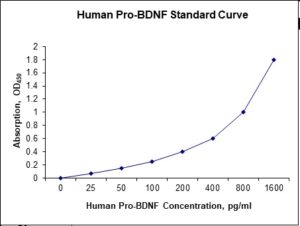 This ELISA kit is for quantification of Pro-BDNF in human. This is a quick ELISA assay that reduces time to 50% compared to the conventional method, and the entire assay only takes 3 hours. This assay employs the quantitative sandwich enzyme immunoassay technique and uses biotin-streptavidin chemistry to improve the performance of the assays. An antibody specific for Pro-BDNF has been pre-coated onto a microplate. Standards and samples are pipetted into the wells and any Pro-BDNF present is bound by the immobilized antibody. After washing away any unbound substances, a detection antibody specific for Pro-DNF is added to the wells. Following wash to remove any unbound antibody reagent, a detection reagent is added. After intensive wash a substrate solution is added to the wells and color develops in proportion to the amount of Pro-BDNF bound in the initial step. The color development is stopped, and the intensity of the color is measured.