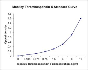 This ELISA kit is for quantification of COMP in monkey. This is a quick ELISA assay that reduces time to 50% compared to the conventional method, and the entire assay only takes 3 hours. This assay employs the quantitative sandwich enzyme immunoassay technique and uses biotin-streptavidin chemistry to improve the performance of the assays. An antibody specific for COMP has been pre-coated onto a microplate. Standards and samples are pipetted into the wells and any COMP present is bound by the immobilized antibody. After washing away any unbound substances, a detection antibody specific for COMP is added to the wells. Following wash to remove any unbound antibody reagent, a detection reagent is added. After intensive wash a substrate solution is added to the wells and color develops in proportion to the amount of COMP bound in the initial step. The color development is stopped, and the intensity of the color is measured.