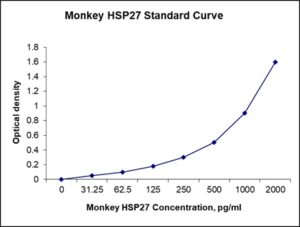 This ELISA kit is for quantification of HSP27 in monkey. This is a quick ELISA assay that reduces time to 50% compared to the conventional method, and the entire assay only takes 3 hours. This assay employs the quantitative sandwich enzyme immunoassay technique and uses biotin-streptavidin chemistry to improve the performance of the assays. An antibody specific for HSP27 has been pre-coated onto a microplate. Standards and samples are pipetted into the wells and any HSP27 present is bound by the immobilized antibody. After washing away any unbound substances, a detection antibody specific for HSP27 is added to the wells. Following wash to remove any unbound antibody reagent, a detection reagent is added. After intensive wash a substrate solution is added to the wells and color develops in proportion to the amount of HSP27 bound in the initial step. The color development is stopped, and the intensity of the color is measured.