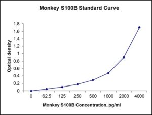 This ELISA kit is for quantification of S100B in monkey. This is a quick ELISA assay that reduces time to 50% compared to the conventional method, and the entire assay only takes 3 hours. This assay employs the quantitative sandwich enzyme immunoassay technique and uses biotin-streptavidin chemistry to improve the performance of the assays. An antibody specific for S100B has been pre-coated onto a microplate. Standards and samples are pipetted into the wells and any S100B present is bound by the immobilized antibody. After washing away any unbound substances, a detection antibody specific for S100B is added to the wells. Following wash to remove any unbound antibody reagent, a detection reagent is added. After intensive wash a substrate solution is added to the wells and color develops in proportion to the amount of S100B bound in the initial step. The color development is stopped, and the intensity of the color is measured.