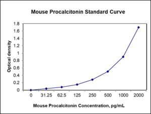 This ELISA kit is for quantification of PCT in mouse. This is a quick ELISA assay that reduces time to 50% compared to the conventional method, and the entire assay only takes 3 hours. This assay employs the quantitative sandwich enzyme immunoassay technique and uses biotin-streptavidin chemistry to improve the performance of the assays. An antibody specific for PCT has been pre-coated onto a microplate. Standards and samples are pipetted into the wells and any PCT present is bound by the immobilized antibody. After washing away any unbound substances, a detection antibody specific for PCT is added to the wells. Following wash to remove any unbound antibody reagent, a detection reagent is added. After intensive wash a substrate solution is added to the wells and color develops in proportion to the amount of PCT bound in the initial step. The color development is stopped, and the intensity of the color is measured.