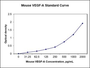 This ELISA kit is for quantification of VEGF-A in mouse. This is a quick ELISA assay that reduces time to 50% compared to the conventional method, and the entire assay only takes 3 hours. This assay employs the quantitative sandwich enzyme immunoassay technique and uses biotin-streptavidin chemistry to improve the performance of the assays. An antibody specific for VEGF-A has been pre-coated onto a microplate. Standards and samples are pipetted into the wells and any VEGF-A present is bound by the immobilized antibody. After washing away any unbound substances, a detection antibody specific for VEGF-A is added to the wells. Following wash to remove any unbound antibody reagent, a detection reagent is added. After intensive wash a substrate solution is added to the wells and color develops in proportion to the amount of VEGF-A bound in the initial step. The color development is stopped, and the intensity of the color is measured.