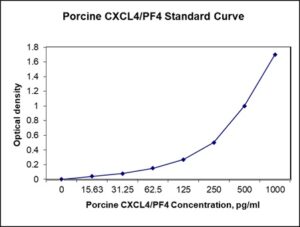 This ELISA kit is for quantification of CXCL4/PF4 in porcine. This is a quick ELISA assay that reduces time to 50% compared to the conventional method, and the entire assay only takes 3 hours. This assay employs the quantitative sandwich enzyme immunoassay technique and uses biotin-streptavidin chemistry to improve the performance of the assays. An antibody specific for CXCL4 has been pre-coated onto a microplate. Standards and samples are pipetted into the wells and any CXCL4 present is bound by the immobilized antibody. After washing away any unbound substances, a detection antibody specific for CXCL4 is added to the wells. Following wash to remove any unbound antibody reagent, a detection reagent is added. After intensive wash a substrate solution is added to the wells and color develops in proportion to the amount of CXCL4 bound in the initial step. The color development is stopped, and the intensity of the color is measured.