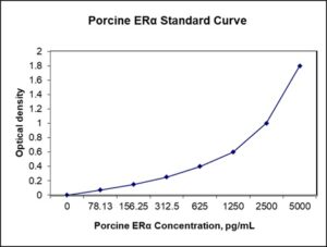 This ELISA kit is for quantification of estrogen receptor alpha in porcine. This is a quick ELISA assay that reduces time to 50% compared to the conventional method, and the entire assay only takes 3 hours. This assay employs the quantitative sandwich enzyme immunoassay technique and uses biotin-streptavidin chemistry to improve the performance of the assays. An antibody specific for ER alpha has been pre-coated onto a microplate. Standards and samples are pipetted into the wells and any ER alpha present is bound by the immobilized antibody. After washing away any unbound substances, a detection antibody specific for ER alpha is added to the wells. Following wash to remove any unbound antibody reagent, a detection reagent is added. After intensive wash a substrate solution is added to the wells and color develops in proportion to the amount of ER alpha bound in the initial step. The color development is stopped, and the intensity of the color is measured.