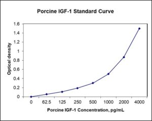 This ELISA kit is for quantification of IGF-1 in porcine. This is a quick ELISA assay that reduces time to 50% compared to the conventional method, and the entire assay only takes 3 hours. This assay employs the quantitative sandwich enzyme immunoassay technique and uses biotin-streptavidin chemistry to improve the performance of the assays. An antibody specific for IGF-1 has been pre-coated onto a microplate. Standards and samples are pipetted into the wells and any IGF-1 present is bound by the immobilized antibody. After washing away any unbound substances, a detection antibody specific for IGF-1 is added to the wells. Following wash to remove any unbound antibody reagent, a detection reagent is added. After intensive wash a substrate solution is added to the wells and color develops in proportion to the amount of IGF-1 bound in the initial step. The color development is stopped, and the intensity of the color is measured.