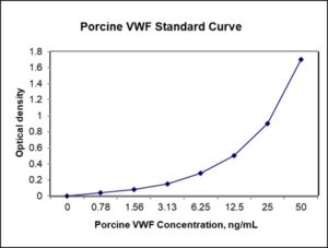 This ELISA kit is for quantification of VWF in porcine. This is a quick ELISA assay that reduces time to 50% compared to the conventional method, and the entire assay only takes 3 hours. This assay employs the quantitative sandwich enzyme immunoassay technique and uses biotin-streptavidin chemistry to improve the performance of the assays. An antibody specific for VWF has been pre-coated onto a microplate. Standards and samples are pipetted into the wells and any VWF present is bound by the immobilized antibody. After washing away any unbound substances, a detection antibody specific for VWF is added to the wells. Following wash to remove any unbound antibody reagent, a detection reagent is added. After intensive wash a substrate solution is added to the wells and color develops in proportion to the amount of VWF bound in the initial step. The color development is stopped, and the intensity of the color is measured.