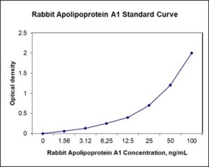 This ELISA kit is for quantification of ApoAI in rabbit. This is a quick ELISA assay that reduces time to 50% compared to the conventional method, and the entire assay only takes 3 hours. This assay employs the quantitative sandwich enzyme immunoassay technique and uses biotin-streptavidin chemistry to improve the performance of the assays. An antibody specific for ApoAI has been pre-coated onto a microplate. Standards and samples are pipetted into the wells and any ApoAI present is bound by the immobilized antibody. After washing away any unbound substances, a detection antibody specific for ApoAI is added to the wells. Following wash to remove any unbound antibody reagent, a detection reagent is added. After intensive wash a substrate solution is added to the wells and color develops in proportion to the amount of ApoAI bound in the initial step. The color development is stopped, and the intensity of the color is measured.