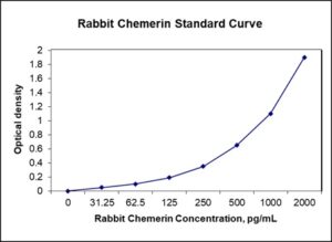 This ELISA kit is for quantification of chemerin in rabbit. This is a quick ELISA assay that reduces time to 50% compared to the conventional method, and the entire assay only takes 3 hours. This assay employs the quantitative sandwich enzyme immunoassay technique and uses biotin-streptavidin chemistry to improve the performance of the assays. An antibody specific for RARRES2 has been pre-coated onto a microplate. Standards and samples are pipetted into the wells and any RARRES2 present is bound by the immobilized antibody. After washing away any unbound substances, a detection antibody specific for RARRES2 is added to the wells. Following wash to remove any unbound antibody reagent, a detection reagent is added. After intensive wash a substrate solution is added to the wells and color develops in proportion to the amount of RARRES2 bound in the initial step. The color development is stopped, and the intensity of the color is measured.