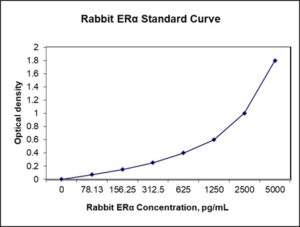 This ELISA kit is for quantification of estrogen receptor alpha in rabbit. This is a quick ELISA assay that reduces time to 50% compared to the conventional method, and the entire assay only takes 3 hours. This assay employs the quantitative sandwich enzyme immunoassay technique and uses biotin-streptavidin chemistry to improve the performance of the assays. An antibody specific for ER alpha has been pre-coated onto a microplate. Standards and samples are pipetted into the wells and any ER alpha present is bound by the immobilized antibody. After washing away any unbound substances, a detection antibody specific for ER alpha is added to the wells. Following wash to remove any unbound antibody reagent, a detection reagent is added. After intensive wash a substrate solution is added to the wells and color develops in proportion to the amount of ER alpha bound in the initial step. The color development is stopped, and the intensity of the color is measured.
