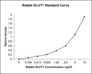 This ELISA kit is for quantification of GLUT1 in rabbit. This is a quick ELISA assay that reduces time to 50% compared to the conventional method, and the entire assay only takes 3 hours. This assay employs the quantitative sandwich enzyme immunoassay technique and uses biotin-streptavidin chemistry to improve the performance of the assays. An antibody specific for GLUT1 has been pre-coated onto a microplate. Standards and samples are pipetted into the wells and any GLUT1 present is bound by the immobilized antibody. After washing away any unbound substances, a detection antibody specific for GLUT1 is added to the wells. Following wash to remove any unbound antibody reagent, a detection reagent is added. After intensive wash a substrate solution is added to the wells and color develops in proportion to the amount of GLUT1 bound in the initial step. The color development is stopped, and the intensity of the color is measured.