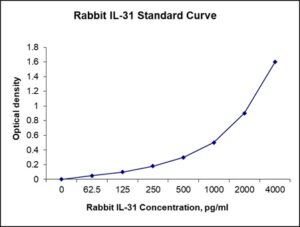 This ELISA kit is for quantification of IL-31 in rabbit. This is a quick ELISA assay that reduces time to 50% compared to the conventional method, and the entire assay only takes 3 hours. This assay employs the quantitative sandwich enzyme immunoassay technique and uses biotin-streptavidin chemistry to improve the performance of the assays. An antibody specific for IL-31 has been pre-coated onto a microplate. Standards and samples are pipetted into the wells and any IL-31 present is bound by the immobilized antibody. After washing away any unbound substances, a detection antibody specific for IL-31 is added to the wells. Following wash to remove any unbound antibody reagent, a detection reagent is added. After intensive wash a substrate solution is added to the wells and color develops in proportion to the amount of IL-31 bound in the initial step. The color development is stopped, and the intensity of the color is measured.