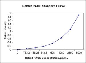 This ELISA kit is for quantification of RAGE in rabbit. This is a quick ELISA assay that reduces time to 50% compared to the conventional method, and the entire assay only takes 3 hours. This assay employs the quantitative sandwich enzyme immunoassay technique and uses biotin-streptavidin chemistry to improve the performance of the assays. An antibody specific for RAGE has been pre-coated onto a microplate. Standards and samples are pipetted into the wells and any RAGE present is bound by the immobilized antibody. After washing away any unbound substances, a detection antibody specific for RAGE is added to the wells. Following wash to remove any unbound antibody reagent, a detection reagent is added. After intensive wash a substrate solution is added to the wells and color develops in proportion to the amount of RAGE bound in the initial step. The color development is stopped, and the intensity of the color is measured.