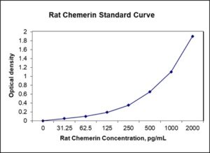 This ELISA kit is for quantification of chemerin in rat. This is a quick ELISA assay that reduces time to 50% compared to the conventional method, and the entire assay only takes 3 hours. This assay employs the quantitative sandwich enzyme immunoassay technique and uses biotin-streptavidin chemistry to improve the performance of the assays. An antibody specific for RARRES2 has been pre-coated onto a microplate. Standards and samples are pipetted into the wells and any RARRES2 present is bound by the immobilized antibody. After washing away any unbound substances, a detection antibody specific for RARRES2 is added to the wells. Following wash to remove any unbound antibody reagent, a detection reagent is added. After intensive wash a substrate solution is added to the wells and color develops in proportion to the amount of RARRES2 bound in the initial step. The color development is stopped, and the intensity of the color is measured.