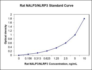 This ELISA kit is for quantification of NLRP3/NALP3 in rat. This is a quick ELISA assay that reduces time to 50% compared to the conventional method, and the entire assay only takes 3 hours. This assay employs the quantitative sandwich enzyme immunoassay technique and uses biotin-streptavidin chemistry to improve the performance of the assays. An antibody specific for NLRP3 has been pre-coated onto a microplate. Standards and samples are pipetted into the wells and any NLRP3 present is bound by the immobilized antibody. After washing away any unbound substances, a detection antibody specific for NLRP3 is added to the wells. Following wash to remove any unbound antibody reagent, a detection reagent is added. After intensive wash a substrate solution is added to the wells and color develops in proportion to the amount of NLRP3 bound in the initial step. The color development is stopped, and the intensity of the color is measured.
