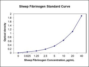 This ELISA kit is for quantification of fibrinogen in sheep. This is a quick ELISA assay that reduces time to 50% compared to the conventional method, and the entire assay only takes 3 hours. This assay employs the quantitative sandwich enzyme immunoassay technique and uses biotin-streptavidin chemistry to improve the performance of the assays. An antibody specific for fibrinogen has been pre-coated onto a microplate. Standards and samples are pipetted into the wells and any fibrinogen present is bound by the immobilized antibody. After washing away any unbound substances, a detection antibody specific for fibrinogen is added to the wells. Following wash to remove any unbound antibody reagent, a detection reagent is added. After intensive wash a substrate solution is added to the wells and color develops in proportion to the amount of fibrinogen bound in the initial step. The color development is stopped, and the intensity of the color is measured.