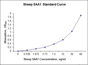 This ELISA kit is for quantification of SAA1 in ovine. This is a quick ELISA assay that reduces time to 50% compared to the conventional method, and the entire assay only takes 3 hours. This assay employs the quantitative sandwich enzyme immunoassay technique and uses biotin-streptavidin chemistry to improve the performance of the assays. An antibody specific for SAA1 has been pre-coated onto a microplate. Standards and samples are pipetted into the wells and any SAA1 present is bound by the immobilized antibody. After washing away any unbound substances, a detection antibody specific for SAA1 is added to the wells. Following wash to remove any unbound antibody reagent, a detection reagent is added. After intensive wash a substrate solution is added to the wells and color develops in proportion to the amount of SAA1 bound in the initial step. The color development is stopped, and the intensity of the color is measured.